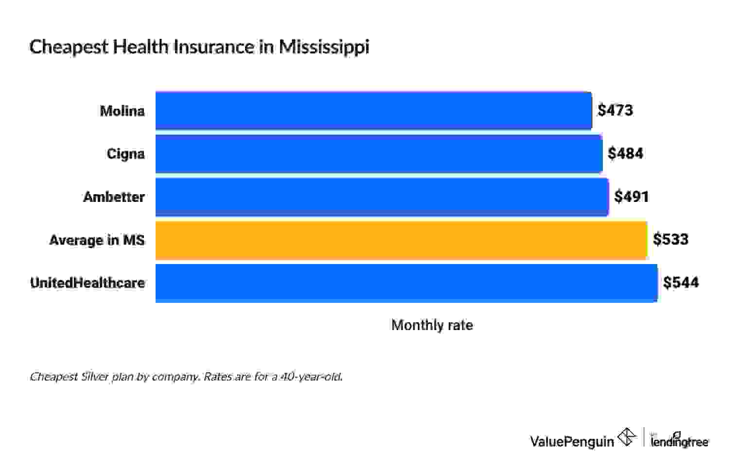 - Oscar has the cheapest health insurance rates in Mississippi, with Silver plans starting at $598 per month. Oscar also has the cheapest Silver rates in several major cities, including Jackson, Southaven and Olive Branch.
